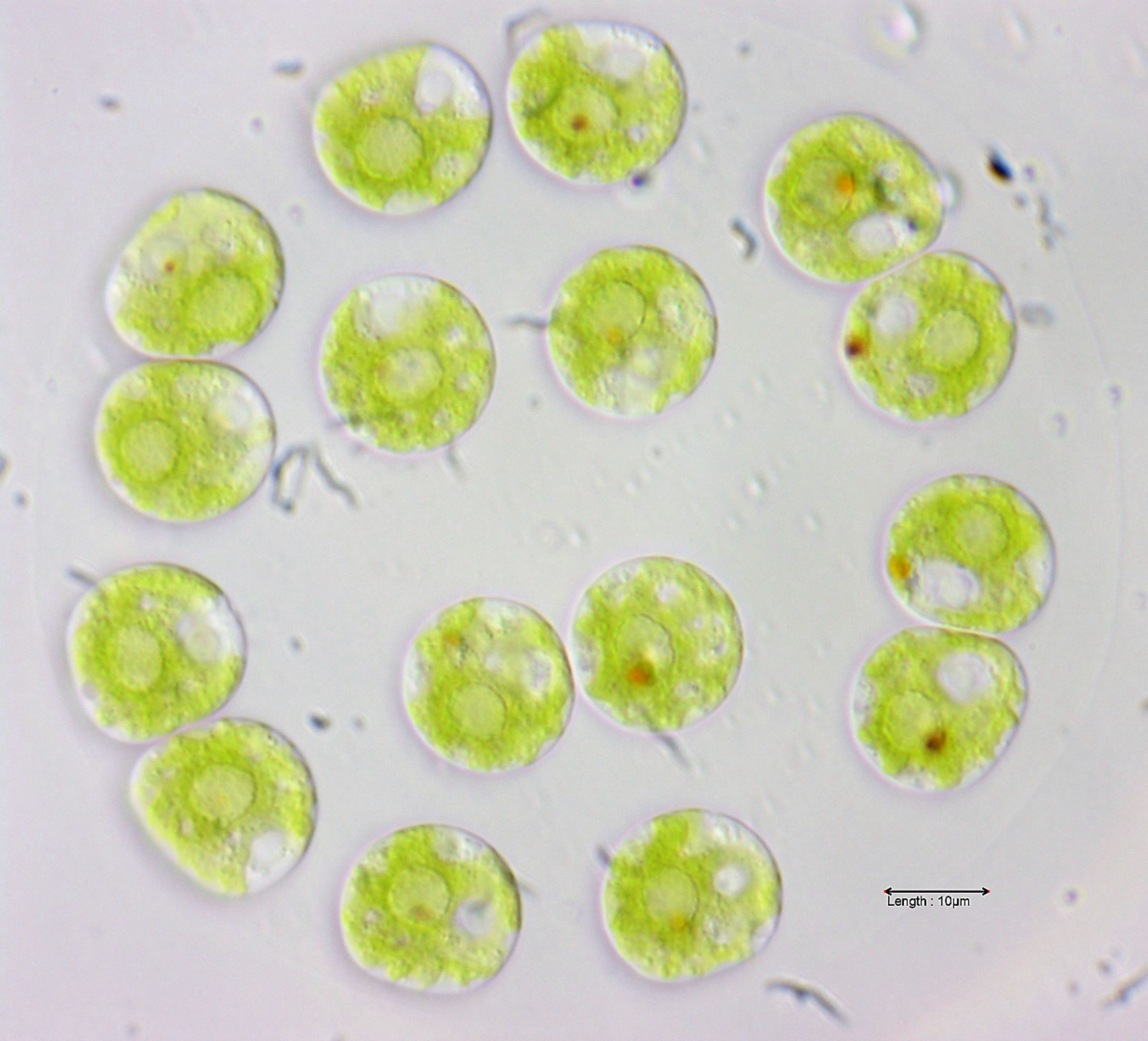 Unicellular, colonial or filamentous green algae. Cells are green, due to the presence of chlorophyll, essential for photosynthesis.